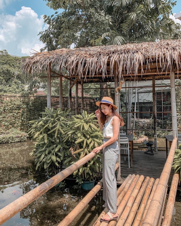 近到戶外區前,在這個充滿南洋氣息的竹子橋上拍照也是很多人打卡的景點之一!去過這麼多華麗的餐廳,還真沒有遇過用竹子搭起來的橋!真的是特別新奇又有趣~