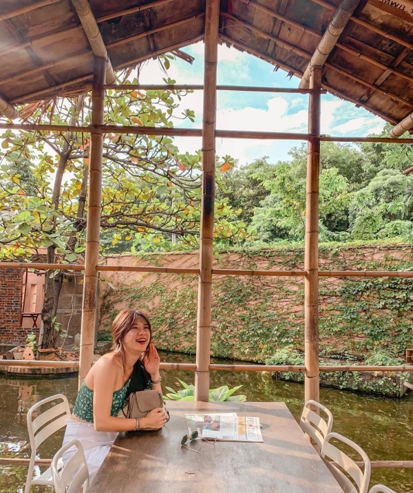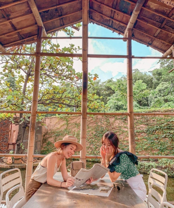 而一進到餐廳最紅的室外區!除了是佇立在水池中央,利用竹子搭成的小橋作為對外通道,以及用樹葉鋪滿整個用餐區的屋簷,你以為這是泰國的鄉野餐廳嗎?不!這餐廳就在台灣!