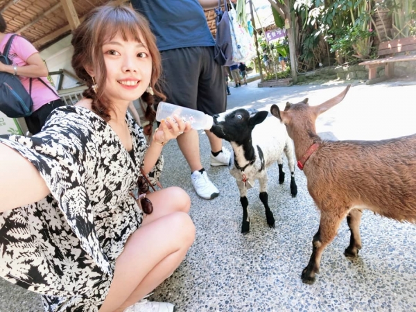 園區裡面超多動物的,根本是個小型動物園阿!有些溫和的動物是可以近距離跟他們互動的唷!可以拿奶瓶、餵小羊喝ㄋㄟㄋㄟ,未免也太萌了吧~