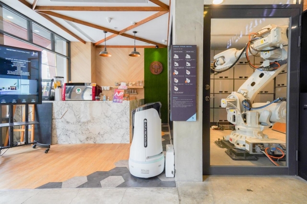 第一間就要來個最潮的!潮到出水的自助旅店,近年提倡無人旅店,全程從訂房到入住全部通通自己來不需要再與飯店人員接洽,自住旅店已經見怪不怪,這間到底哪裡潮?最潮的地方就是!竟然是用充滿未來感的巨型機械手臂服務你的需求!