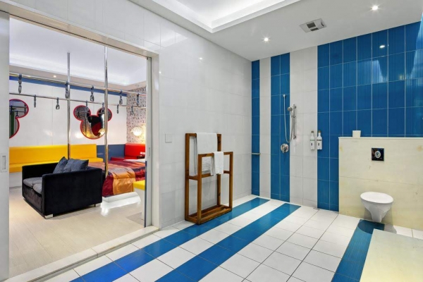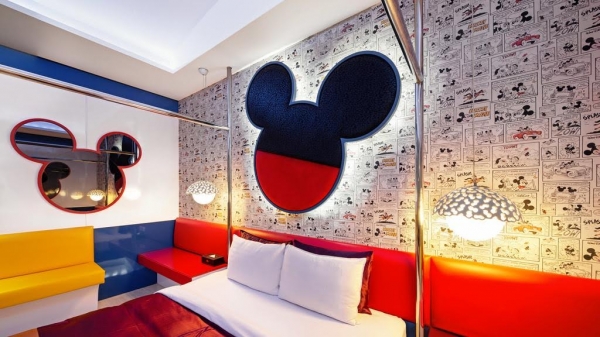 一整間全部都是超可愛米奇主題,看了讓人心癢癢好想趕快跟米奇一起睡一晚啊!台中這家汽車旅館除了米奇主題外,還推出多達29種不一樣的主題房,不但還有茉莉公主房與超大浴缸的豪華房,唱K一定要的無敵主題房…等,但小編還是最愛這個米奇列車啦~