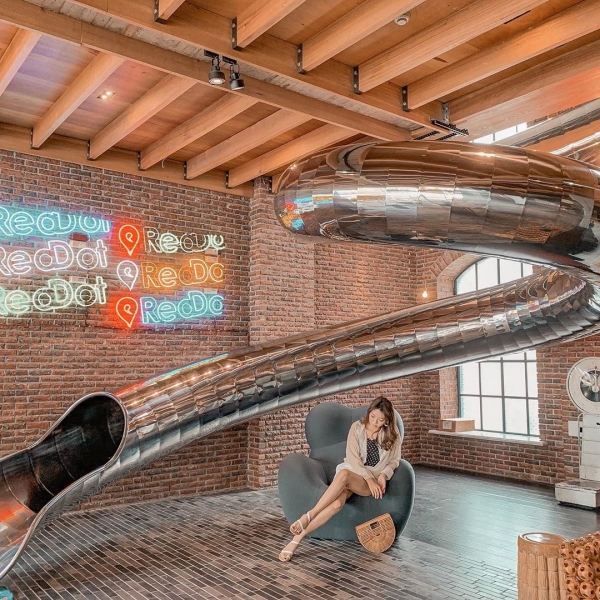 有溜滑梯的旅店應該很常見吧!尤其是親子民宿比比皆是一大堆吧~但是你有看過整個一樓大廳都被超巨大溜滑梯圍繞的旅店嗎?沒有吧沒有吧!全台首間超巨大化溜滑梯創意文旅就在台中啦!
