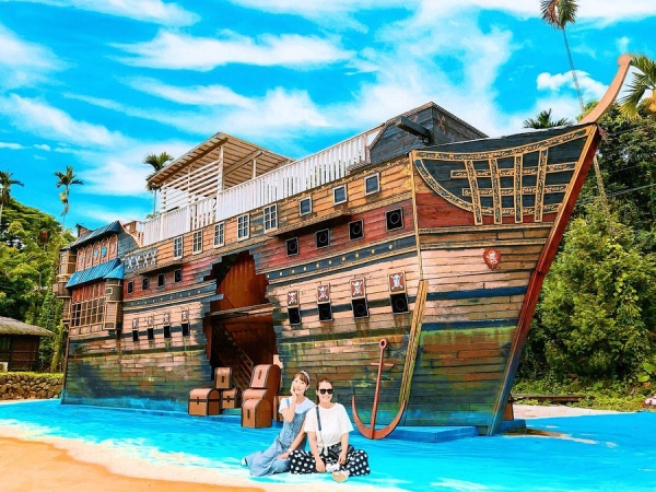 南投七月份新開幕的最新景點「海盜村景觀彩繪園區」,超大海盜船、繽紛童話木屋、彩繪牆,來一趟就可以收錄超多美照,洗版一整天不是問題!雖然現在還在熱潮期,假日去人潮相當多,不過因為園區相當寬敞,所以不會感覺太擠,只要大家都有按照排隊順序~都可以拍到想要拍的景喔!