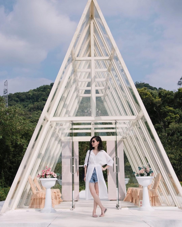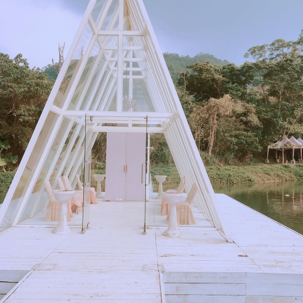 超美的水上教堂,不少人為了它慕名而來!在教堂拍照不時會有鴿子在飛,拍起來也會營造出一種特別美感!這座以「全白色系」三角建構,用最簡約色調打造出一種優雅美感特別讓人喜歡!