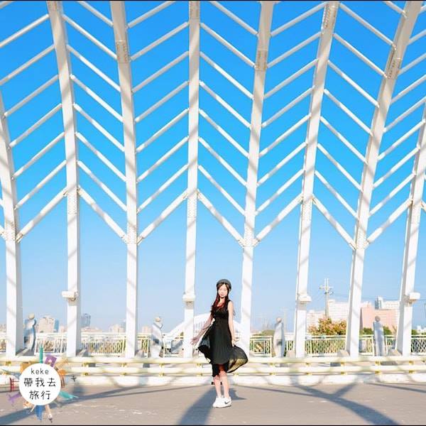 台中真的有拍不完的美橋,純白的鋼骨加上光影的襯托,看起來特別的唯美。這座超美的禾豐橋,是台中第一座有頂蓋的橋,鋼骨互相連接的設計,讓人彷彿置身於隧道中~