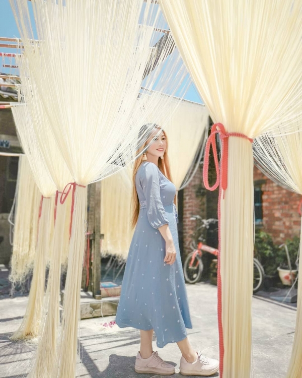 哇~好美的窗簾喔!喂!不是啦~這個是麵線吼~這是藏於鹿港小鎮的超級有名麵線,阿義手工麵線,佈滿整個三合院,來到鹿港就是要打卡這種濃濃「在地味」!不少人前來外拍~