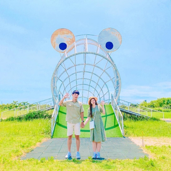 還有小型滑草場!這隻呱呱也太勾錐了吧~不跟它拍一下真的對不起自己了啦~