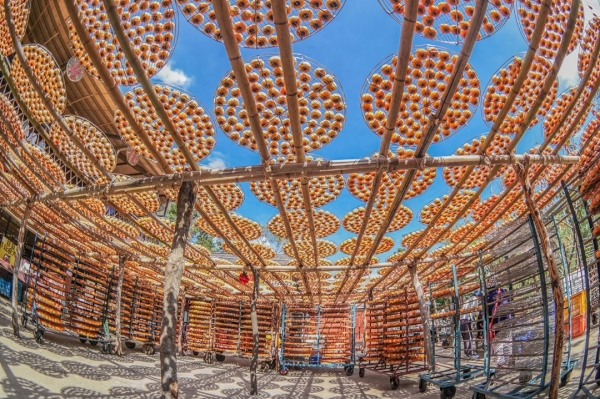 柿餅的季節!來到新竹當然大家都去看曬柿餅啦~橘紅一塊塊的柿餅,一到假日這裡可是爆多人來!柿餅背景就是超美的!