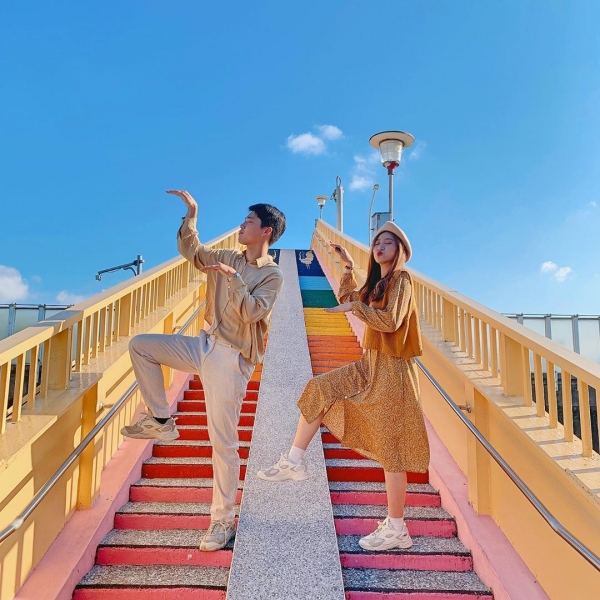 唉呦威~這座天橋也太韓風了吧~完全免飛韓國就能拍出韓風情侶的照片呀!這是位於螢橋國小旁的天橋~每天這樣通往天橋回家去根本太開心了吧!