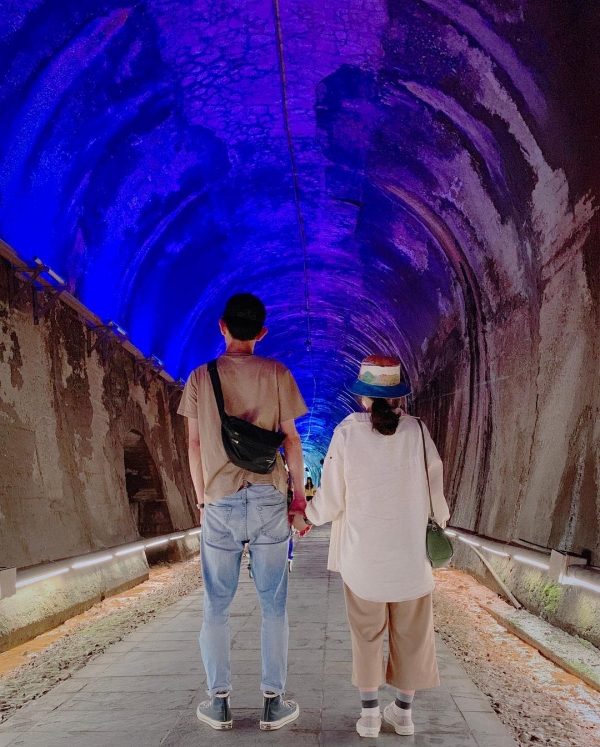來到全台最美的百年老隧道「苗栗功維敘隧道」,LED燈光下真的超級美!