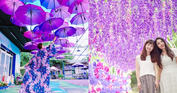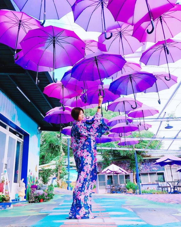 鄉親啊~看看這個超浪漫的夢幻紫傘啊!我們在傘下獨自來回凝望~哈哈不要亂唱!這個傘雨真的是太浪漫!簡直是少女心噴發的地方欸,真的是太好拍了啦!這個傘下真的很可以啦!紫色控就是要來這裡拍照啊~