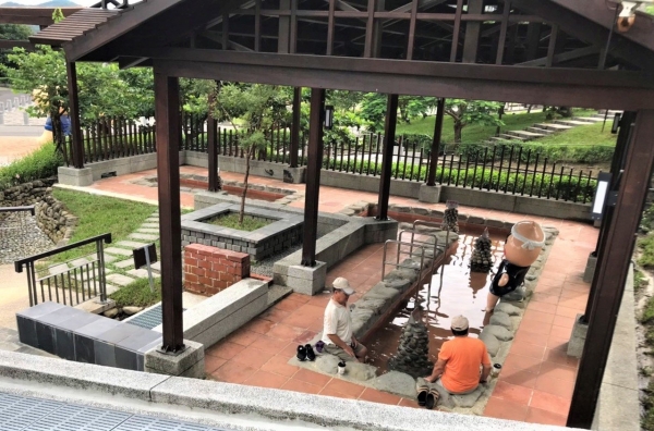 四重溪溫泉泉質是無色無味、可飲可浴的鹼性碳酸泉,又有「美人湯」的美稱,可以在公園內免費泡泡腳,之後再在公園內漫步,感受燈海的浪漫、拍拍美景,身心都超級療癒!