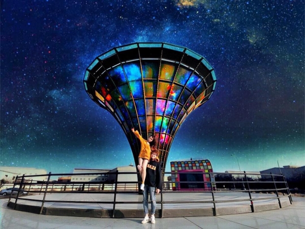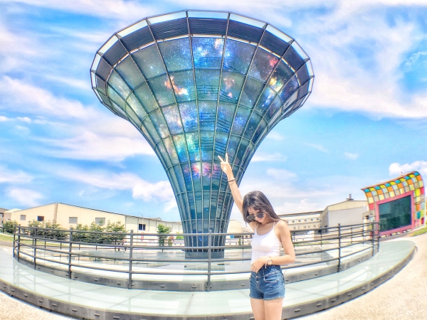 在台灣玻璃廟的外面,也有一座超吸睛的拍照裝置「宇宙塔」,同樣是以全玻璃燈組成的超炫爛裝置,將無邊無際的宇宙化成實體展現在眼前,如夢似幻的浩瀚星空,白天、黑夜都超美!