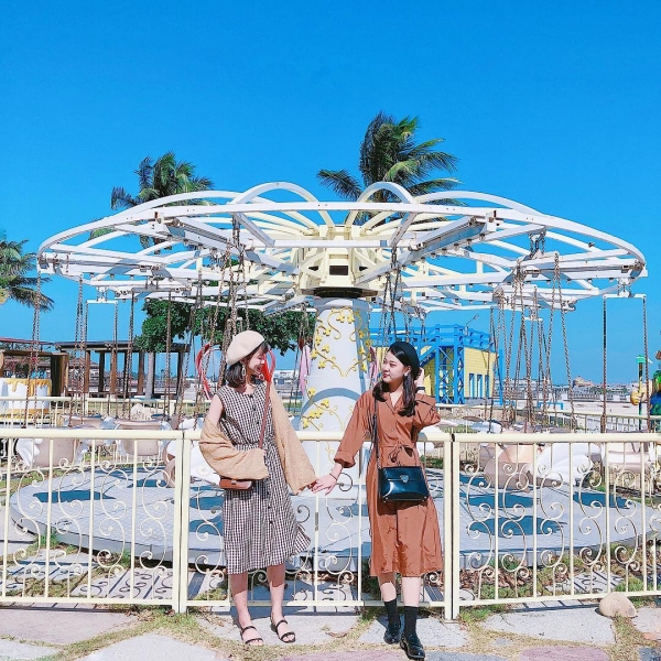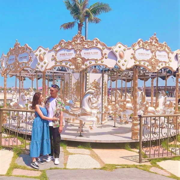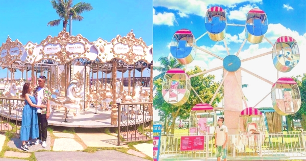 除了情侶適合來放閃光彈,這兒也是親子同遊的好選擇,有小朋友最喜愛的沙坑和戲水池,還有白金色調的浪漫系旋轉木馬、咖啡杯等,大人、小孩都能玩得開心。