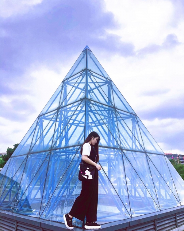 到歐抽旅遊,前往巴黎羅浮宮朝聖透明金字塔是許多人一輩子的夢想清單之一!不過如果短期內去不了那麼遠,那就來台北花博公園吧~玻璃帷幕式建構而成的透明金字塔,拍起來真的好夢幻喔~雖說與正版的迷你縮小版,不過現場看還是有一定規模的,人站在旁邊也是感覺挺壯觀的呢!
