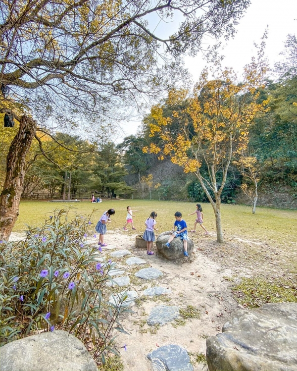 而建築物的對面是一整片療癒的大草坪,假日的話可以看到不少小朋友在上面盡情奔跑玩耍,平日粉粉們來的話,也可以享受午後陽光灑在草皮上的那種愜意,讓整個莊園變得更加詩情畫意~