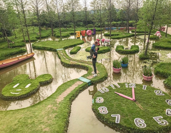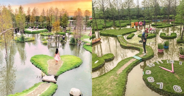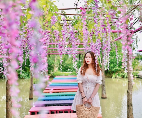 這邊除了超可愛的水樣森林以外,還有超夢幻紫藤花步道,而且還是以彩虹磁磚搭建起來,浮在水持中央的紫藤花浪漫步道,整個就是像走在仙境一樣啊~