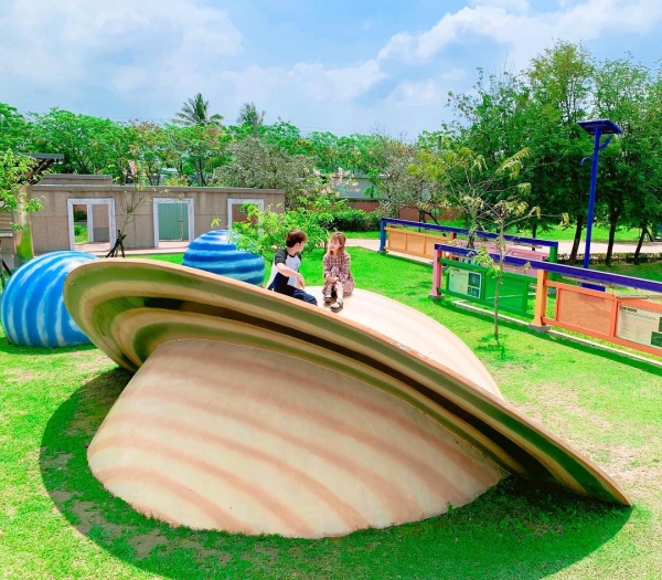 園區內有超多裝置藝術跟互動式體驗設施,比較喜歡逛逛園區的朋友們可以選擇這裡來走走唷~有很多特別的建築物可以拍攝。