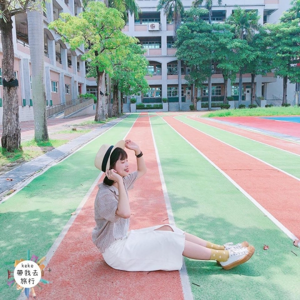 如果小時候學校這麼漂亮,我也會想每天上學~~~繽紛的色塊彩繪牆,還有紅綠相交的西瓜跑道,彩繪控的人千萬不要錯過唷!