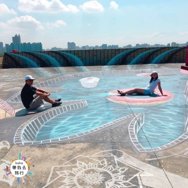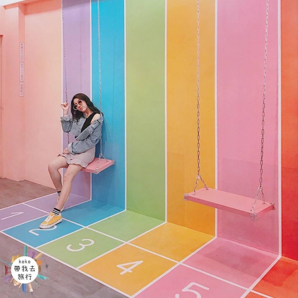 與華人首席3D彩繪藝術家圖龍合作,每幅畫都栩栩如生,拍出的照片會有種進入畫中的感覺,地面上還有『最佳拍照區』的指示,可以完整呈現3D立體的效果。無障礙走道也能將它搖身一變,成為彩虹步道真的很用心!