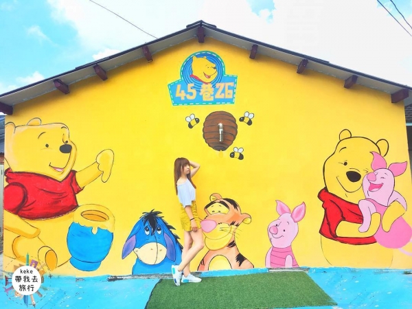 維尼控照過來唷!位於台南下營有著全台唯一的小熊維尼彩繪村,當地發起的年輕人為了美化老家,以維尼熊為主題,並加上當地特色進行彩繪創作,村內滿滿的維尼萌死人不償命呀!除了小熊維尼也有許多其他可愛卡通人物唷!