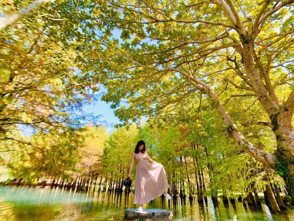 小編連花蓮的打卡景點都為大家整理好啦!鈺展苗圃最特別的地方就是落羽松是在水上唷!水面的倒影加上詩情畫意的背景,感覺起來就像在拍偶像劇一樣,超級浪漫~