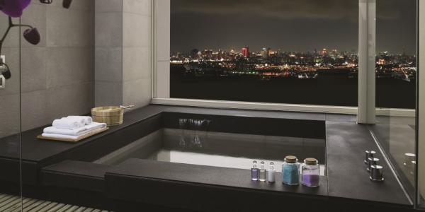 不僅房內有夜景,就連房間裡的湯池都可以看到璀璨的台中之夜!