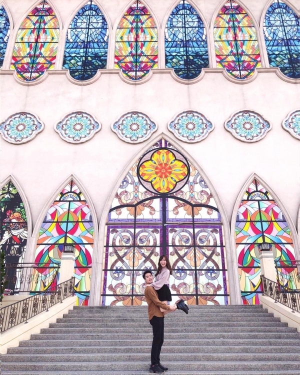 超美的婚宴會館,光是外觀就美到成為了拍照熱門景點!哥德式教堂的彩繪牆,還有真實的雕刻紋路,拍起來超級浪漫,熱戀中的情侶一定要來拍!