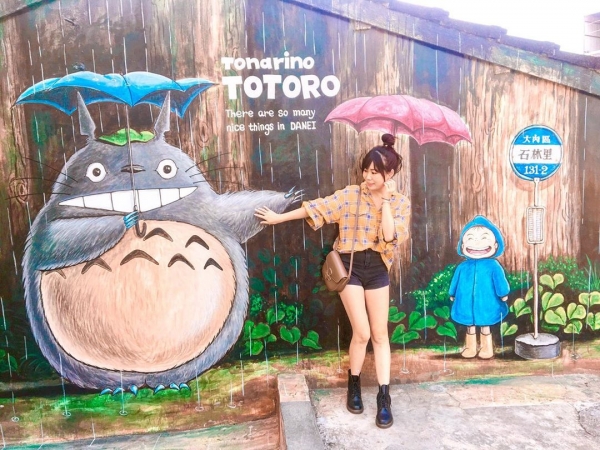 台南最近最夯、最可愛的日系拍照打卡景點~大內龍貓公車站,超逼真的彩繪村裡面,有著可愛的龍貓跟小梅在這裡等你來玩~連飲料上的拉花都有龍貓的可愛模樣!