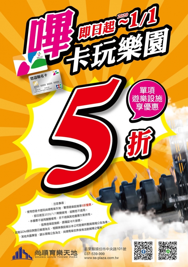 嗶卡5折玩樂園,即日起至2020/1/1單項遊樂設施,嗶悠遊卡5折超殺優惠喔!