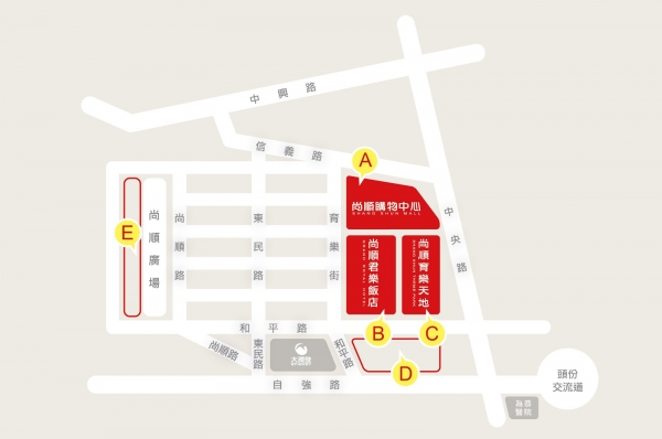 南下或北上,由頭份交流道下,車程約5分鐘至尚順育樂世界。