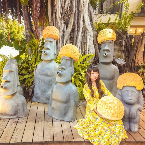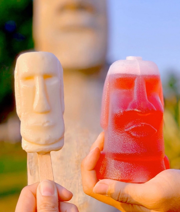 甚至連園區還特別製作摩艾石像造型周邊商品,Q版的縮小版摩艾冰棒,摩艾造型綜合果汁拿著超酷炫,三款不同表情的摩艾石像造型雞蛋糕,拿起來拍就像摩艾石像的小寶寶!