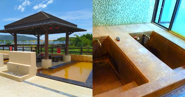 這個黃黃的泡腳池,真的不是髒髒的!是被認證過的「鐵泉」,因為與空氣接觸到後,因此變成這樣黃黃的,不過這樣的泉質可是有「黃金之湯」的美名欸!鎮公所也放上了黃金之湯的小訊息,來這裡真的可以放心的養生泡湯啦~
