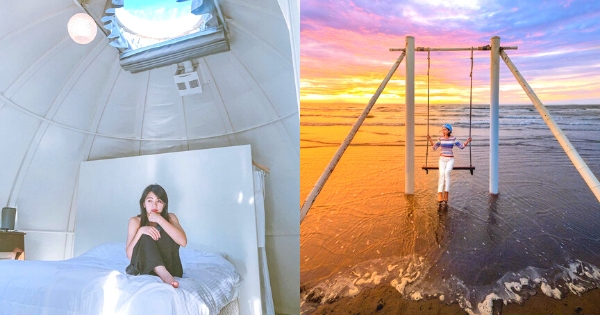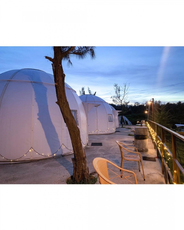 超可愛的純白小帳棚排排站任你拍,除了住宿可以賞湖景之外還有療癒身心的海景也是必不可少的啦!快點進來看看超文青望海鞦韆~