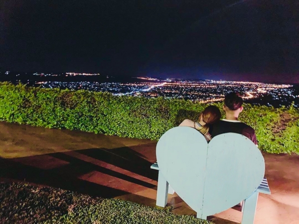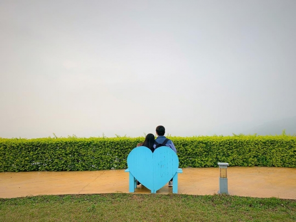 在看夜景的景觀區,有一張愛心椅,和另一半去、做在愛心中看夜景...夜景星光閃爍都敵不過你們放的閃光啦~實在太亮了!