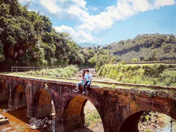 擁有近百年歷史的大平紅橋,曾被票選全國歷史一百大建築第六十五名,斑駁的紅磚與青苔磚石,告訴我們他的風華,古老滄桑依舊的美麗,經過日籍藝術家水內貴英創作,在大平紅橋上打造一座人工彩虹,讓象徵著幸福和財富的彩虹,為這座歲月橋重新賦予生命。