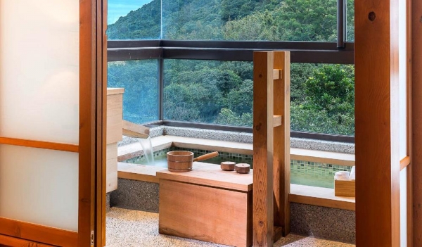 房間內的私人湯池會有32°C、55°C兩種冷熱溫泉,入住的旅客可以自行調配出自己最喜歡溫度、享受最適合自己的溫泉~