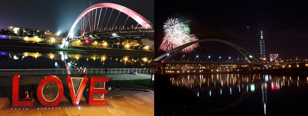 在饒河夜市吃飽喝足,或是帶著美食前往附近的彩虹河濱公園,廣闊的河川以及雄偉的大橋,高空煙火綻放,顯得格外浪漫。
