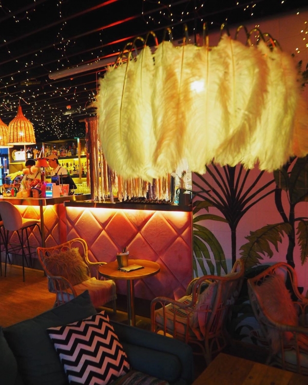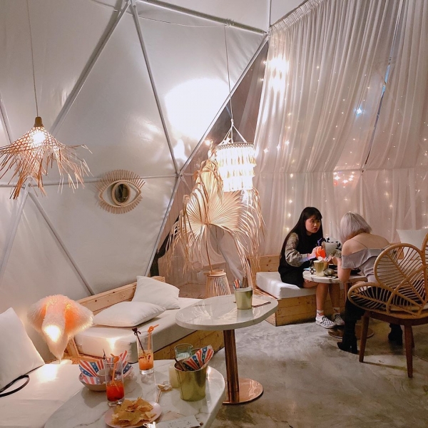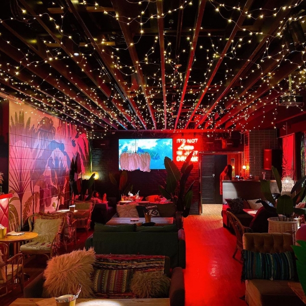 進入之後你會覺得彷彿進入另一個世界!霓虹燈、燈飾完美搭配之外,還運用不同色塊去拼湊出充滿異國情調的格調抱枕跟毯子點綴其中。