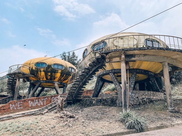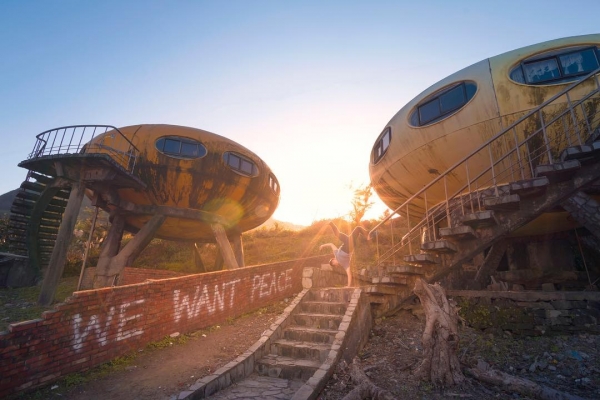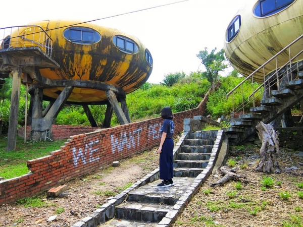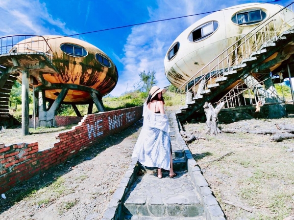 圓圓扁扁的形體是不是超級特別的呢!很像電影裡面外星人的座艙喔,加上這邊年久失修的關係,整體給人一種破舊又復古神秘的感覺,拍起照來更增加了一種奇幻的風格!