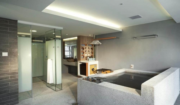 外表充滿滿滿的設計感,就像他的名字一樣,是一顆佇立在市區的石頭,清水模的外觀又更加深了對他的印象,內部房間也是採不規則的設計,讓整個空間都充滿了未來感的感覺,這樣的設計旅店,在泡澡的同時還可以欣賞,如果喜歡這樣充滿設計感的粉粉們真的別錯過這間平價旅店啦~