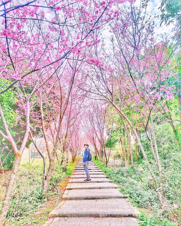 除了新落成的教堂,靜宜大學裡頭還有著許多秘境,像是這條山櫻花步道,超厲害~每年開出超漂亮的櫻花,,滿滿一條綿延粉紅步道,可說是必拍聖品!