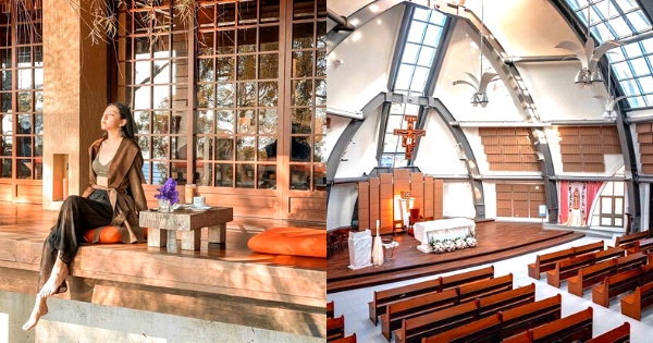 教堂由四個弧形牆版結構體組成,以屋頂上方玻璃十字架連結,在藍天的襯托之下,不同角度有著不同的美,