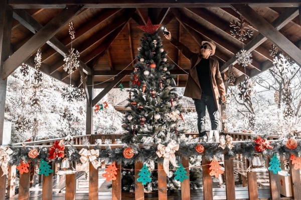 階梯步道也相當有意思,道路兩旁的繡球花樹也都裝飾著聖誕球,小巧思點綴之下非常有聖誕意境!