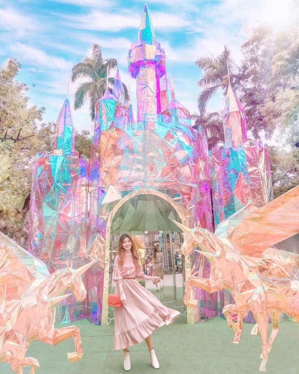 園區內最搶眼的冰晶城堡,夢幻到白天晚上都有不一樣的美,拍起來都像在仙境一樣!點燈過後又像施展魔力一樣的活過來啦~