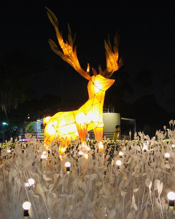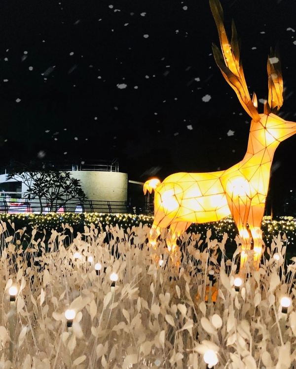 佇立在白色草叢中的夢獸雨林,利用神獸靈鹿作為這區的主燈,把精神翼翼的靈鹿用白色的小樹林包圍起來,看起來又更夢幻啦!