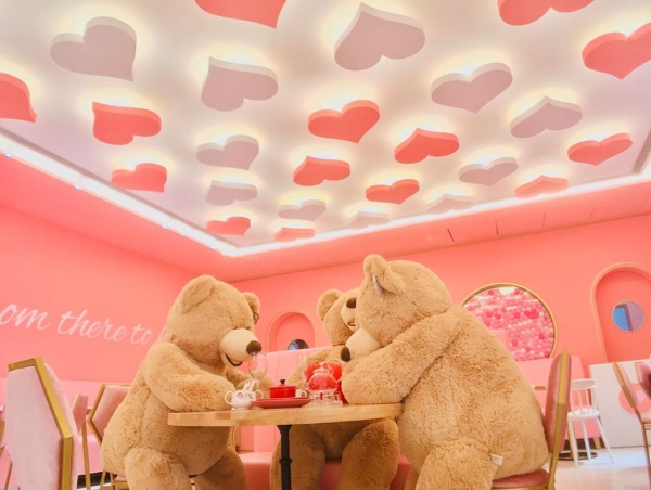 而室內的下午茶用餐區則是有超多可愛的大熊熊在這裡陪伴大家一起吃下午茶~整個粉嫩的裝潢也超讓人少女心噴發的啊!