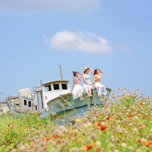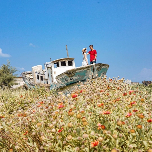 花海常常看~但你見過在廢墟中的花海嗎?超級反差的搭配絕對讓你眼睛一亮!在苗栗「外埔漁港」就有一片荒地,上面有著幾艘廢棄漁船,歷經滄桑的風貌搭配周邊滿滿的整片天人菊,對比的襯托著老舊船隻,超特色場景也讓這裡誠為熱門打卡景點!