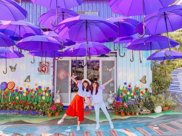 苗栗西湖有座夢幻的紫色咖啡屋~這裡有紫藤花相當浪漫之外,最好拍的就是位於門口這一整片紫色愛情傘,拍起來相當夢幻呢~