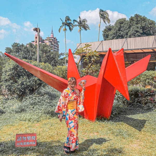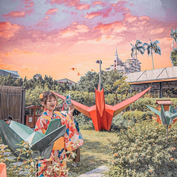 庭園裡到處都有紙鶴的蹤影,各種顏色都有超療癒!其中有個超大紙鶴是大家來這邊必拍的景點,有一種可以乘坐在上面到處飛行的感覺!